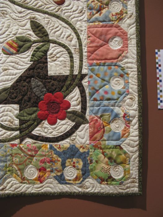 Detail. I have to assume that the quilter is really Judi Madsen, of Green Fairy fame, but I could be wrong. It was gorgeous in both the making and the quilting.