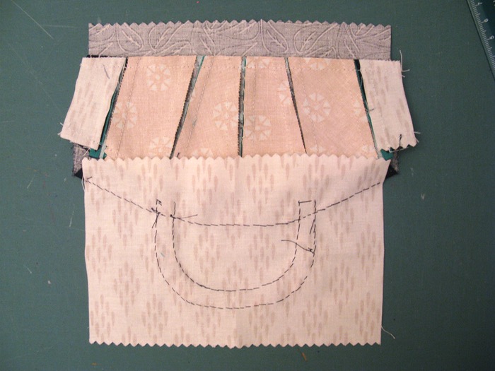 The back, using some Phillip Jacobs (on the right) and some Marimekko (from Crate and Barrel’s outlet sale some years ago). The signature blocks (the white Xs) are pieced into the Phillip Jacobs, or at least I think that’s who designed that fabric. At any rate, the print is a lovely-as-can-be radishes.