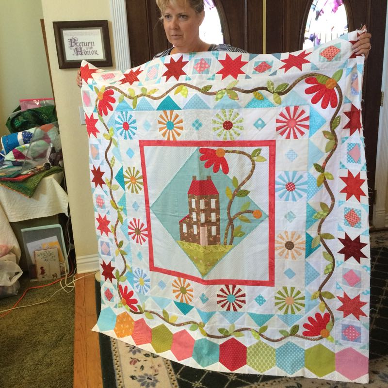 Leisa worked on several projects, but this is her quilt from a Road to California class using Little House on the Prarie fabrics.