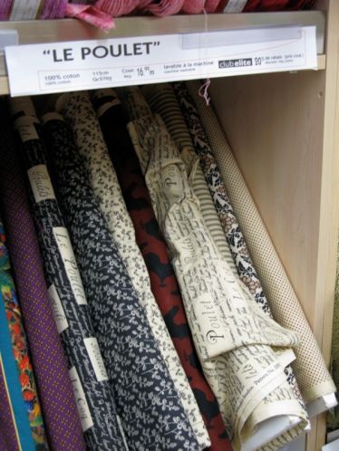She said, “Bonjour!” and ushered us in. She had thought it began at 10, and was a good sport for letting us in early. Every shop had made a quilt, and here are shots of The Quilter’s Faire, plus a look at her beautiful store.