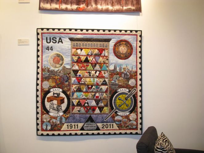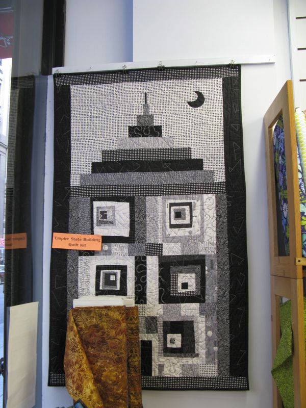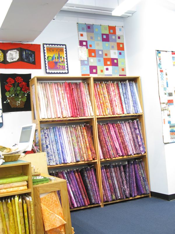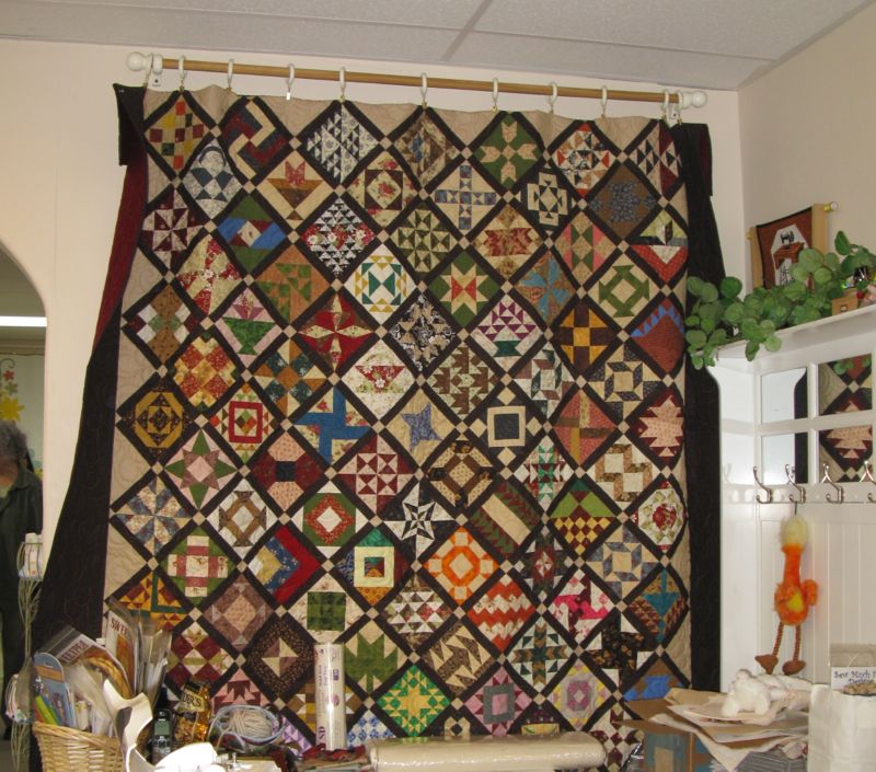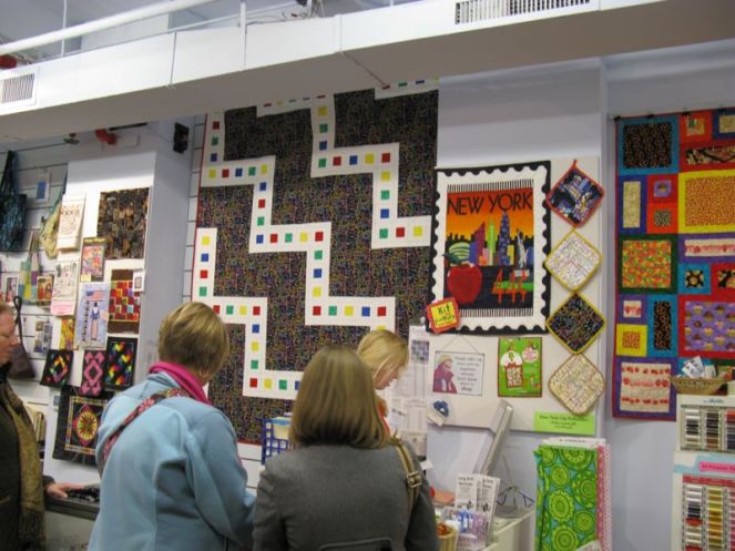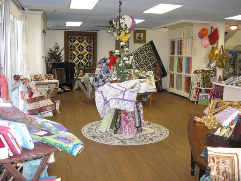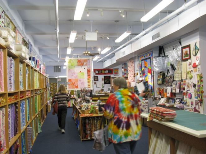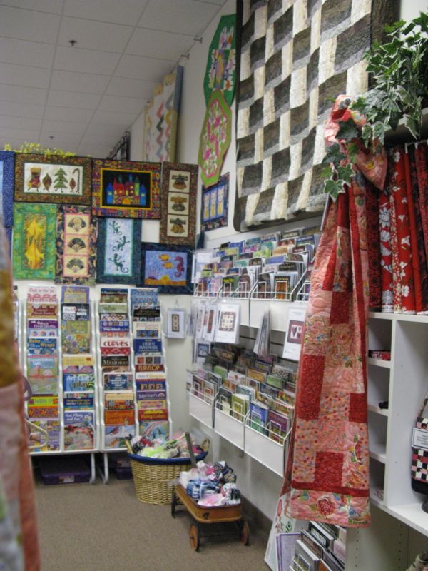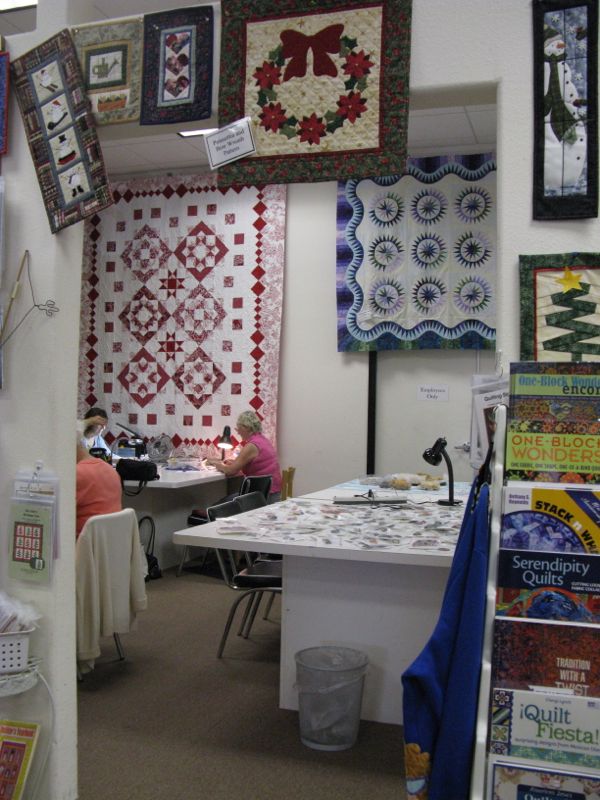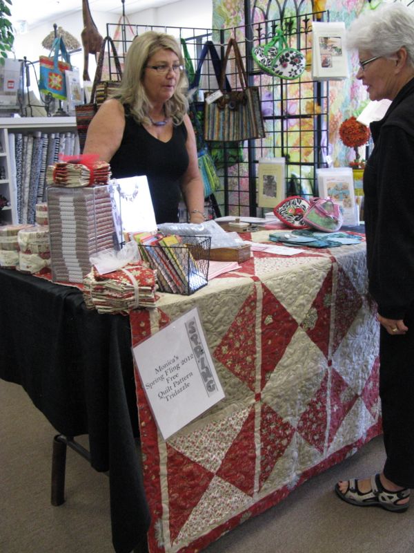 Monica, herself, greeted us at the door, and gave us a little tour of her store–unique as in that she carries tons of beads and supplies, as well as a being a quilting store. Her quilt was on the table, as well as above the fabric shelves. In fact, this shop, as well as The Quilter’s Faire, had lots of great samples.