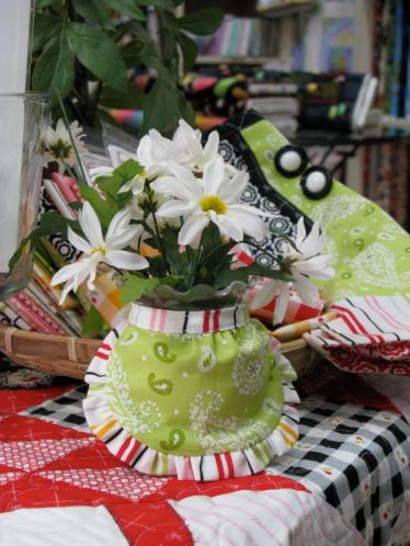 Two cute little yo-yo quilts right by the door. Keep this in mind for July.