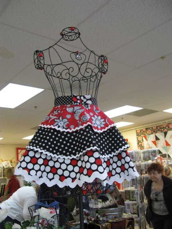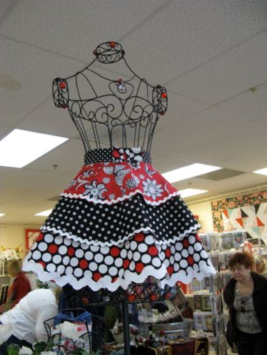 Besides seeing totes and bags in all the shops, I saw a lot of aprons. This three-tiered number in black and white was perky and fun, and made me think about ric-rac.