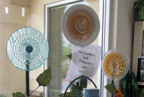And these very cool garden flowers, made from thrift-store plates. I wanted one of those, but held off.