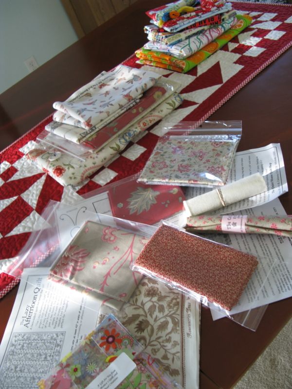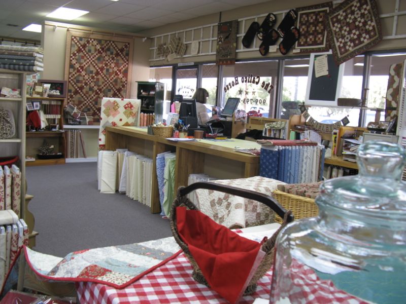 Our local shops (I live inland from Los Angeles) got together for a Spring Fling Shop Hop. This one was unique as it was small consortium of shops, all within one day’s driving distance–a perfect shop hop. The draw for my friend Leisa and I was that each visited shop would give away a fat quarter of Moda’s latest Rouennerie’s Deux line. Last week we hopped in the car at 8:15 a.m. and headed out to Palm Desert.