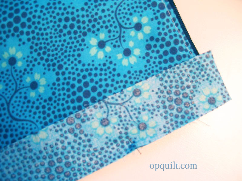 Trim the binding even with the side seams, then zig-zag (overcast it) to keep the ends from fraying. Again, lift the zipper up and out of the way.