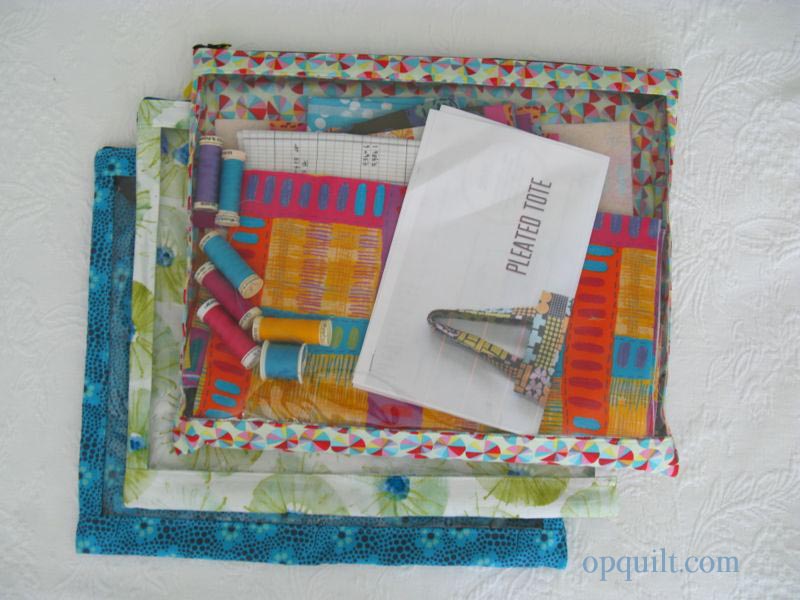 Elizabeth’s Project Folio, front and filled with my next project, a bag made of Keiko Goke fabric