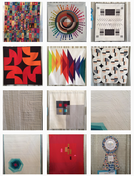 Row 3: Nora (quilting done by Mom Quilts; this is a reproduction of an antique quilt from Virginia in the 1840s). What I noticed was even though the quilting was done by a long-armer, she went in and hand-stitched around each circle.