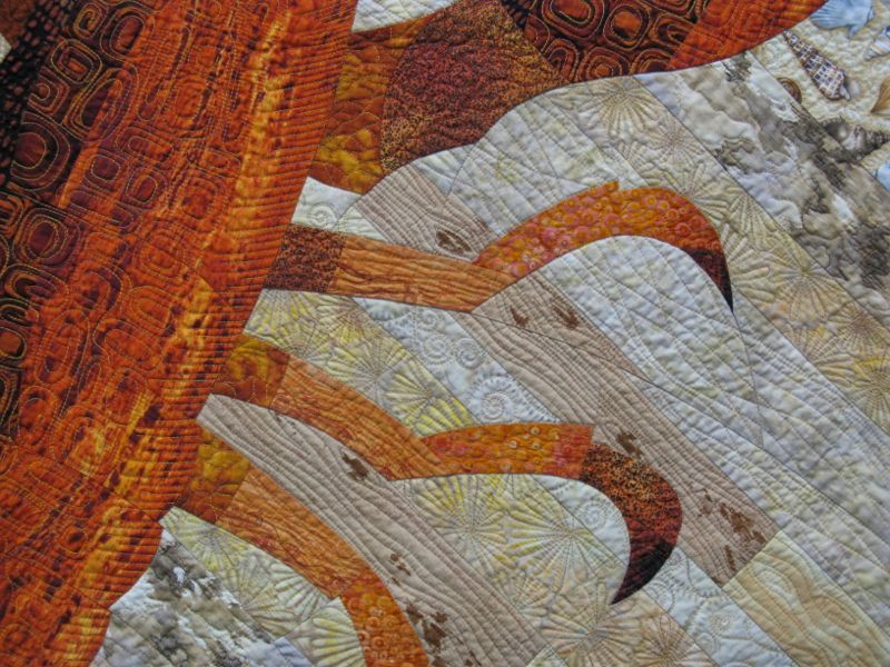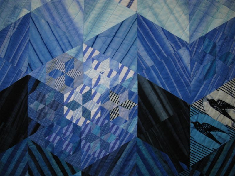 This is from the faculty section and this quilt is Karen Eckmeier’s: Seeking Balance. Quite of few of our little quilting group head to this show, and at this point, I was walking with Laurel–this was her favorite. We got up very close to see how it was done.