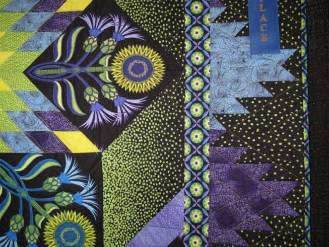 A Time for Healing–The Wannabees 1,000 Crane Quilt was made by a group of quilters from San Mateo California, in response to the tragedy of the tsunami in Japan last March. They had all their friends from all over make and sign cranes, and were able to raise money to send for relief efforts. It is truly a work of love and skill, and carries such a powerful message. I could never find a time when someone wasn’t standing in front, reading the names on the cranes.
