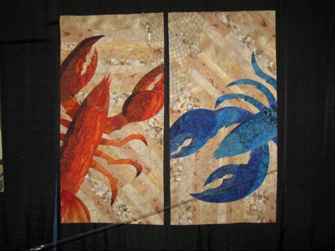 But when my quilts don’t get in, or the quilts of my friend Leslie, or the supposedly hundreds of other quilts that applied and were rejected–and then I see Ugly #1 and Ugly #2 in a “Sponsored By” booth–I begin to realize that these quilts are in here because somebody sponsored the group they came from (think $$$) which allowed them to claim floor space at Road. I see the same thing at Long Beach–a really sparse exhibit, filled in only by groupings Sponsored By someone or another, but theirs is not a juried show.