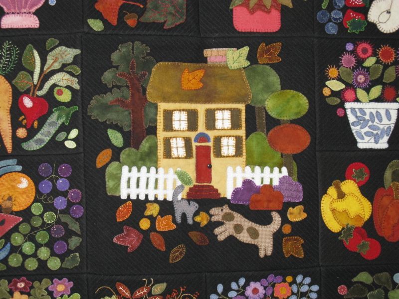 All these little houses are raw edge applique, overlayed with tulle, then quilted, a technique that’s been on my radar for some time now, but have never tried.