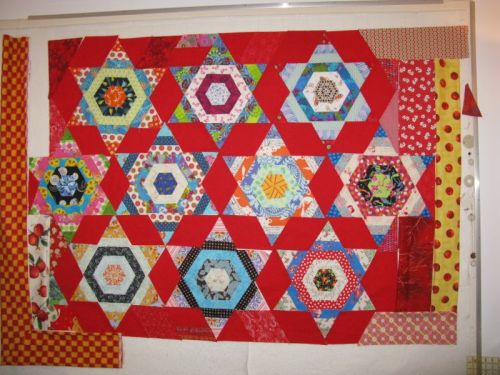 This was mine, so I put it to good use on the back of this very red quilt.