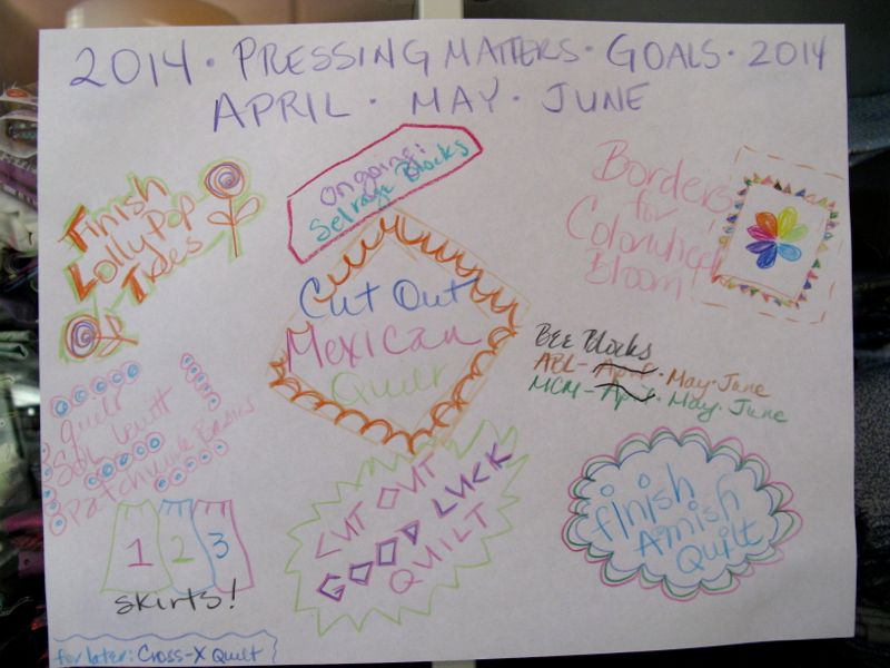In days long past, I’d splash those goals up here — a way to keep “myself accountable” — or something like that. But given the tight real estate on the birthday cake (more candles than cake to hold them), I’ll politely decline that course of action. I’ll consider the best days the ones where I can work happy and contented, able to call out across the hallway to my husband, answer a phone call or take a walk, or pause to watch the bees attack the wisteria blossoms with gusto just outside my sewing room window — interrupting all evident progress.