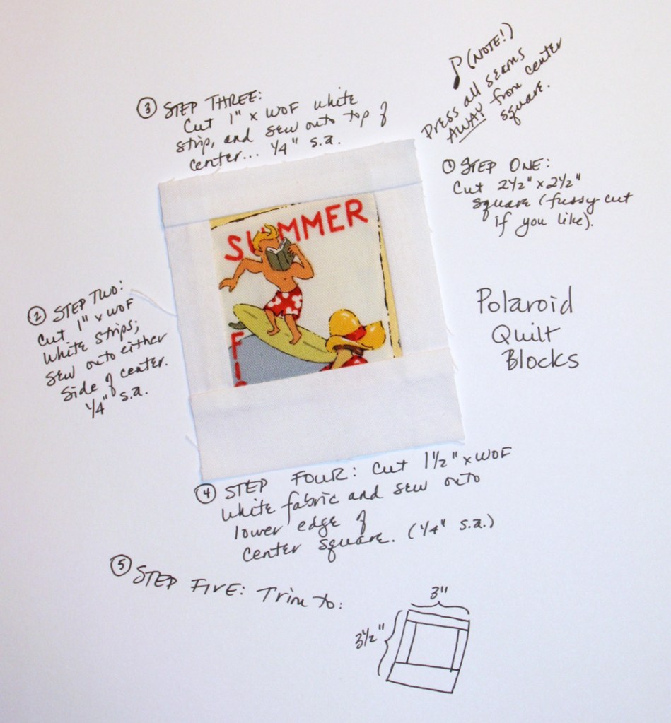 If you missed yesterday’s post about Snapshot, my latest quilt (above), scroll down as there is information for fabric requirements and a basic How-To for Polaroid Blocks.