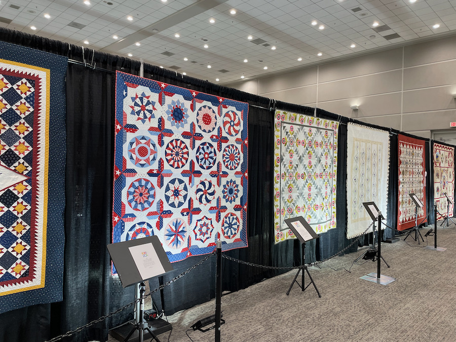 And then class was over. No, I don’t know what that fabric is I used for the blue, but I plan to make this quilt a few scrappy blocks at a time. It’s such a great pattern, and using their rulers makes it easy. We went back over to the convention center, to grab the last couple of hours of the day. It’s about half the size in terms of vendors, with no large tent this time. I thanked a lot of the vendors for coming, knowing that it’s a hard time for this sort of thing. The quilt show is also smaller, so I was happy to get my quilts in.