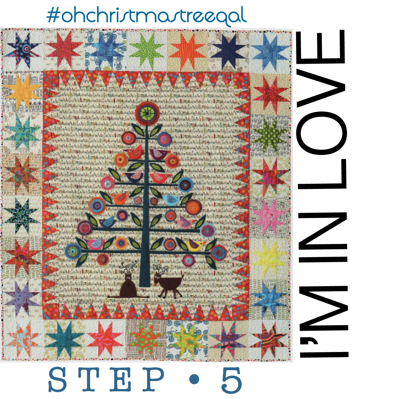 Today is Step 7 — the final step — of our Oh Christmas Tree Quilt-a-Long (#ohchristmastreeqal), following a pattern by Wendy of FlyingFishKits and which was published in Simply Moderne issue #3, by QuiltMania. As always, we have an assist from Wendy of Wendy’s Quilts and More (blog) and wendyquiltsandmore (IG). Our hashtag on Instagram is #ohchristmastreeqal so look there for more ideas.