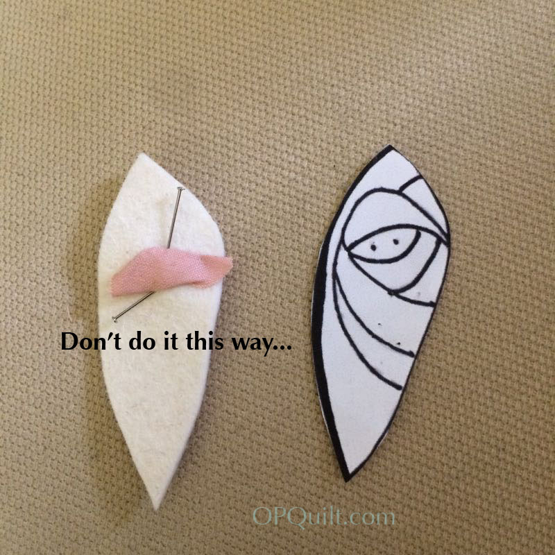 Now you are going to make a “web” of thread, as you sew the pieces into rows. Keep reading.