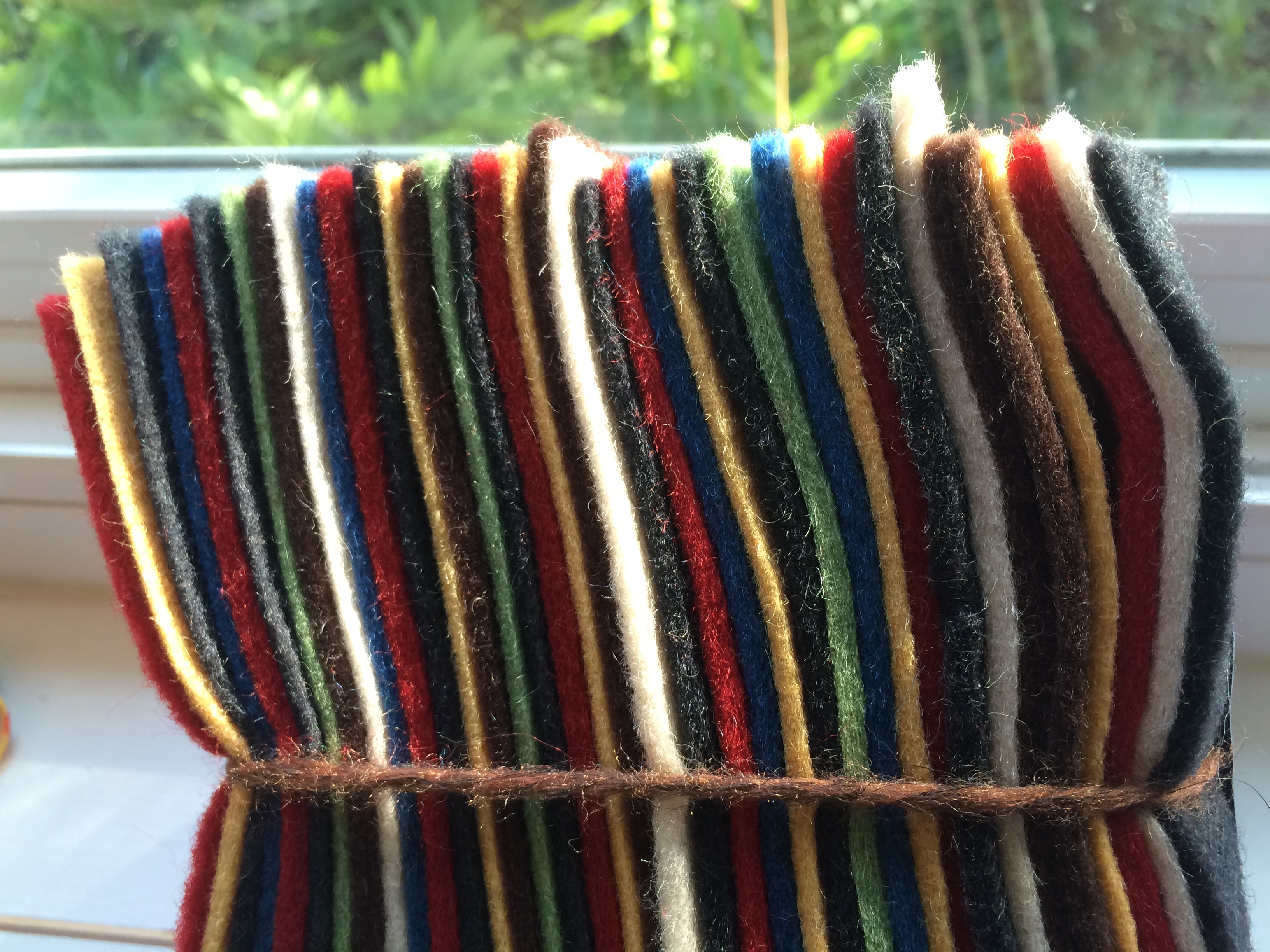 I’ve sewn them, pressed them, and now I can stack them, ready to sew the rows together. Because of the thread-web, I won’t get a piece turned around, or upside down.