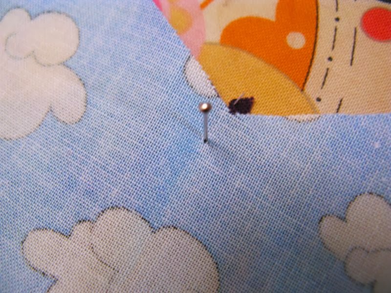 When you get to the pin, STOP with your needle down in the fabric. Remove the pin, then pivot the fabric so that you can match raw edges. Move the first seam out away from you, as you align the new sides. It may feel a bit bulky under your foot, but smooth any excess fabric out away from you.