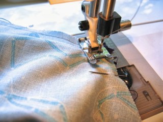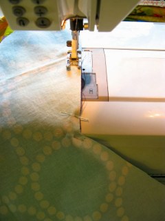 Another shot of my needle placed just on the other side of the seam allowances (which I flipped to the back of my presser foot).