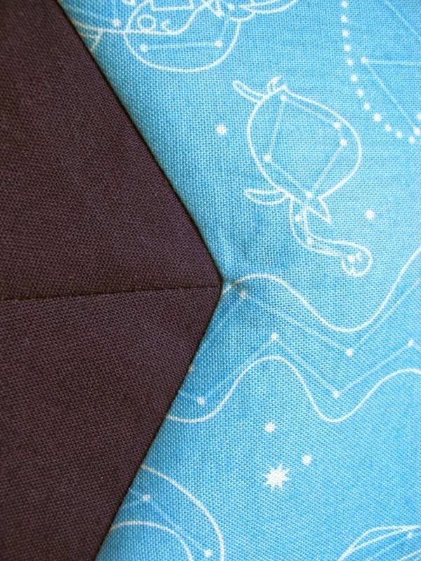Sometimes your seam gets a little jig-jaggy. As long as it’s not too bad, it will be fine. I did the same kind of stitching process on this one: shorten your stitches as you approach the point, then lengthen them out on the other side.